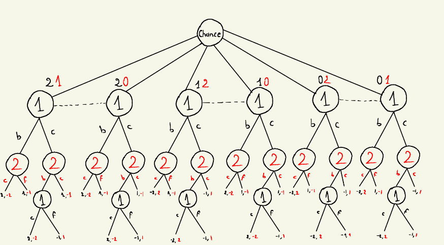 Below is the full game tree (first-level infosets highlighted for clarity):
